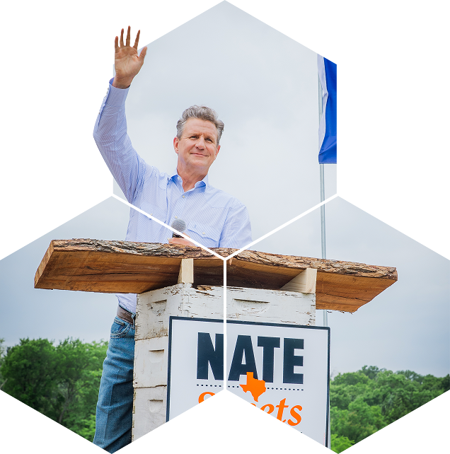 His record shows he can turn convictions into results, and he’s determined to do it again for every Texas family, farm and ranch. Nate and Patty have been married for 29-years and have 4 children and a daughter-in-law. Nathan is a conservative Republican, driven by his faith, and proudly served 6-years in the U.S. Navy Reserves. Now he’s ready to serve every Texan for a better and healthier future.