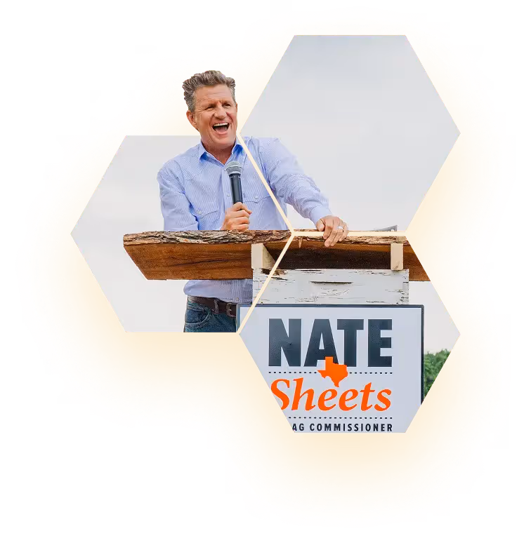 From a backyard hive to America’s #1 branded honey, Nathan Sheets has spent two decades proving that rigorous science and principled stewardship make food both pure and profitable. Now he’s ready to serve every Texan as Agriculture Commissioner—standing shoulder-to-shoulder with the farmers and ranchers who power our economy and ensure Texas families have food they can trust. Nathan isn’t a career politician; he’s a builder who unites people around clear vision and delivers common-sense solutions.