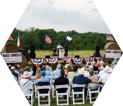 Rural Texas is the backbone of Texas agriculture. As Agriculture Commissioner, Nate Sheets will work to bring new jobs and opportunities to rural Texas that refine or process our agricultural goods into finished products. For too long, these critical jobs in the food supply chain have vanished from rural Texas and the very Texans whose families and neighbors grow or raise our food.